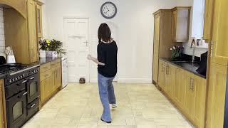 5,6,7,8Rock R back, recover weight fwd onto L, step R fwd, begin to make ¼ L as you cross L over R