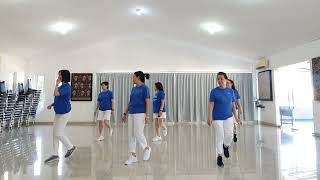 Step/ rock L fwd (1), recover weight onto R (2), step L back (3), cross R over L (&), step L back (4)