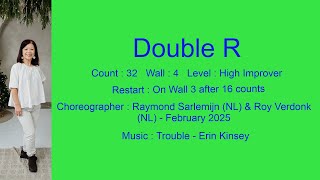 | Double R (29) er en 32/4 high improver linedance, energisk og udfordrende nok til at holde improvere engagerede. Dansen byder på variation i retninger og trin, der understøtter musikkens drive, og den kræver både fokus og musikalitet. Det er en koreografi, der inviterer til attitude og personlig styling.