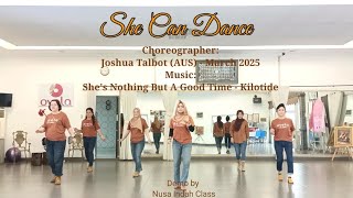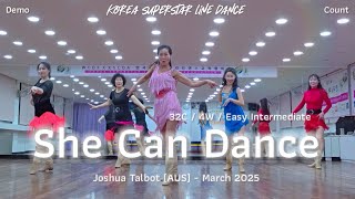 | She Can Dance er en 32/4 easy intermediate linedance med et energisk og flydende flow, der matcher musikkens festlige og livlige stemning.
