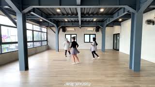 S3: Rock R, Recover, R Behind-Side-Cross, Hold, Ball Cross, Step L ¼ L, Swivel ½ R