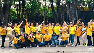 1-2Step forward on RF and Take R hand back and L hand forward (Rotating body to the R slightly), Step forward on LF Clap hands (returning body to front)