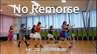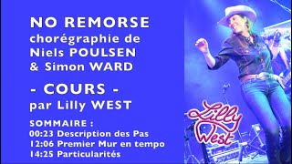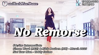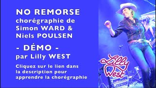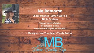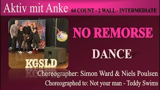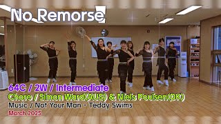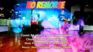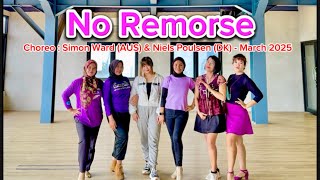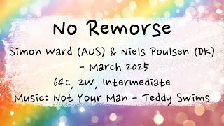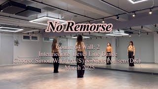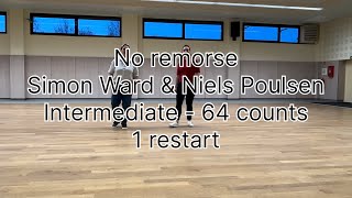 | No Remorse er en følelsesladet og kraftfuld 64/2 intermediate linedance, koreograferet af to af genrens mest respekterede navne, Simon Ward og Niels Poulsen, i marts 2025. Dansen udnytter musikkens stærke puls og emotionelle lag til at skabe bevægelser med både intensitet og flydende dynamik.