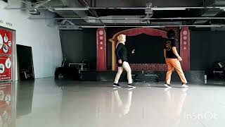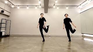[33 – 40] R touch & heel X 2, R fwd, 1/8 R flick L, L shuffle fwd
