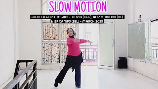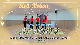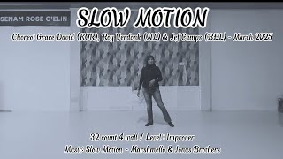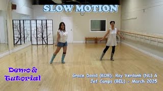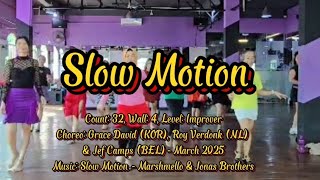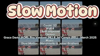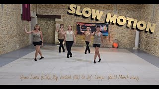 | Slow Motion er en 32/4 improver linedance med et blødt og moderne flow, hvor trinene elegant følger musikkens rytme og dynamik. Dansen kombinerer lethed og musikalitet, hvilket gør den både tilgængelig og sjov at danse for et bredt publikum.
