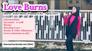 | Love Burns er en tempofyldt 56-count, 2-wall linedance på intermediate-niveau, koreograferet af Karl-Harry Winson fra Storbritannien i april 2025. Dansen er fyldt med energi, fede overgange og et let funky præg, der passer perfekt til musikkens moderne take på et klassisk hit. Power, rytme og masser af danseglæde. Karl-Harry Winson er en populær og erfaren britisk koreograf, kendt for sine musikalske og kreative linedance-koreografier. Hans stil er moderne og tilgængelig, men indeholder altid detaljer, der gør dansen spændende og underholdende.