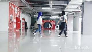 1-2&LF big step to the L side & RF drag next to LF, RF step back with 1/8 turn to the R, LF step back (04:30)