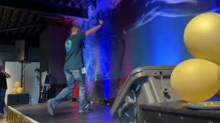 3&4Close LF next to RF and hitch up R knee, Step forward on RF, Close LF next to RF and hitch up R knee