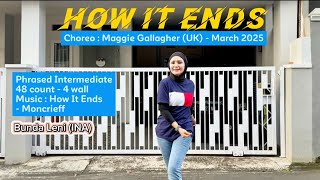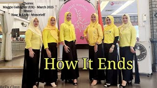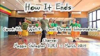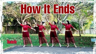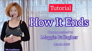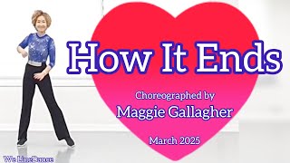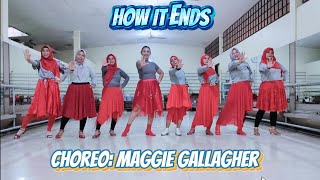 | How It Ends er en dramatisk og intens 48/4 phrased intermediate-dans, hvor både teknik og udtryk får fuld spilletid. Maggie Gallagher har skabt en koreografi, der følger musikkens emotionelle opbygning – fra blød introspektion til kraftfuld forløsning – med trin, der bevæger sig gennem gulvet med elegance og styrke.