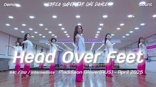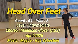 Head Over Feet er en elegant 64/2 intermediate linedance, der kombinerer flydende trin med stærk musikalitet. Koreografien har både intensitet og blødhed, hvilket giver plads til fortolkning og udtryk, mens den følger musikkens følelser tæt.