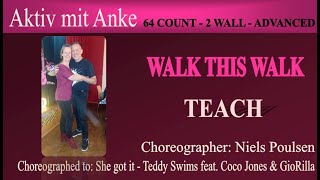 Walk This Walk er en kraftfuld og attitude-fyldt 72/2 phrased advanced-linedance, koreograferet af Niels Poulsen (Danmark) i maj 2025. Dansen kombinerer stil, styrke og musikalitet med skarpe bevægelser og præcise fraser, der følger musikkens skift og dynamik. Det er en koreografi med show-effekt, skabt til dansere med erfaring og selvtillid.