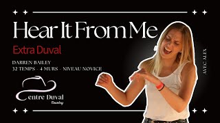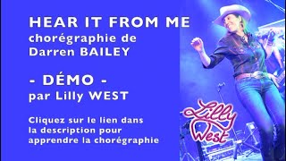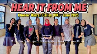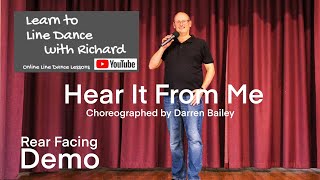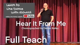 | Hear It From Me er en smooth og let swingende 32/4 improver-linedance, koreograferet af Darren Bailey (UK) i juni 2025. Dansen er fyldt med naturlige vægtskift, små drej og en afslappet country-feel, der matcher musikkens fortællende stil perfekt. Den er let at nyde, men alligevel interessant nok til at holde improvere engagerede.