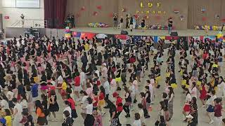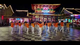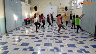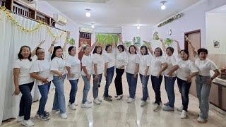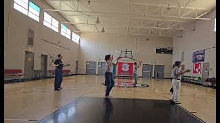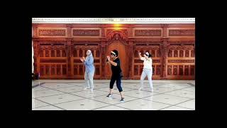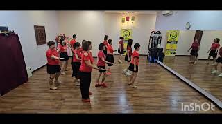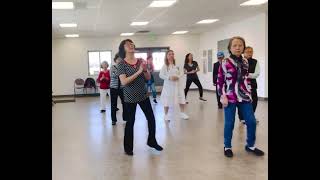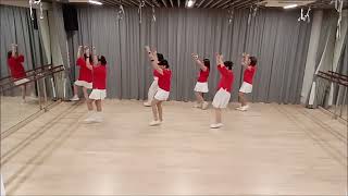 12Step RF forward to R diagonal (1), Touch LF next to RF clapping hands (2)
