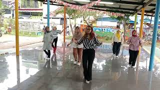 56Step RF back to R diagonal (5), Touch LF next to RF clapping hands (6)