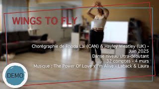 Wings To Fly er en lys og opløftende 32/4 absolute beginner-linedance, koreograferet af Rhoda Lai (Canada) og Hayley Wheatley (UK) i juni 2025. Dansen er nem at lære, fyldt med bløde, enkle trin og en positiv stemning, der gør den perfekt til begyndere eller som en feel-good opvarmningsdans for alle niveauer.