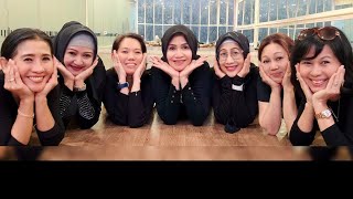 7-8Step Back R and push both hands down to R (7), Step L together and push both hands down to L (8) (**)