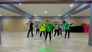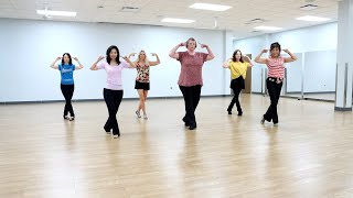 Note: on first walk (count 5), click R hand up above head and then bring arm down to the R on counts 6-8