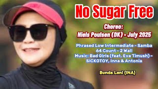 | No Sugar Free er en energisk og udfordrende 64/2 phrased low advanced samba-linedance med masser af latin-feel, skarpe hoftebevægelser og hurtige vægtskift. Dansen kombinerer sambaens karakteristiske bounce med præcise retninger og kræver både teknik, timing og udstråling.