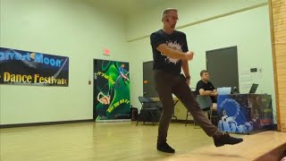 [10 – 16] R samba step together 3/8 R, run LR fwd, rock L fwd, R&L light press steps