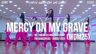 | Mercy On My Grave (wdm25) er en dramatisk og dybt musikalsk 60/1 advanced linedance i rolling 8-count stil. Dansen er bygget op med komplekse bevægelsesmønstre og kræver både teknisk præcision og følelsesmæssig fortolkning. Den udfolder sig i ét rum med kraft, kontrol og intens stemning – skabt til dansere, der ønsker at fordybe sig fuldt i musik og bevægelse.