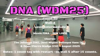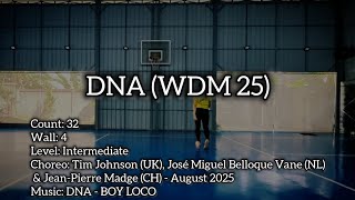DNA (wdm25) er en kraftfuld og moderne 32/4 intermediate linedance med elektronisk energi, stærkt beat og skarpe bevægelser. Dansen kombinerer præcise retningsskift, rytmiske accenter og kontrolleret flow – ideel til dansere, der elsker at bevæge sig til moderne, elektronisk pop med kant og attitude.