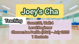 | Joey's Cha er en elegant og let dansende 32/4 beginner cha cha-linedance med et glidende flow og bløde overgange, der gør den både tilgængelig og musikalsk tilfredsstillende. Trinmønstret balancerer enkelhed med en snert af latin-inspireret finesse, hvilket gør den ideel både til undervisning og sociale gulve, hvor man ønsker en dans, der er nem at lære, men stadig føles fyldig og sjov at danse.