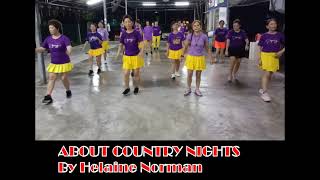 | About Country Nights er en 32/2 absolute beginner linedance, enkel, festlig og velegnet til sociale gulve. Den er let at lære og skaber en glad atmosfære.
