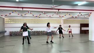 7-8Making ½ turn R transferring weight to RF (7), Making ½ turn R step LF back (8) Make ¼ turn R to start again 6:00