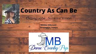 | Country As Can Be er en 32/4 beginner linedance, som med sin enkle struktur og energiske flow er blevet en klassiker på gulvet siden sin udgivelse i 2011. Den fanger essensen af countrydans med lette trin, der giver plads til både begyndere og rutinerede dansere at nyde musikken sammen.