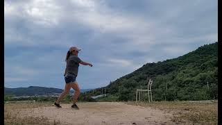 7, 8½ R step L together, kick R fwd with R toe pointed fwd