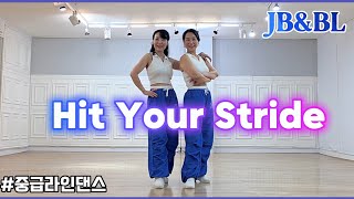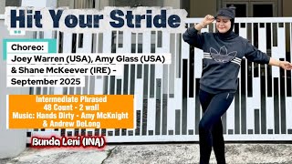 | Hit Your Stride er en intens 48/2 intermediate phrased dans, hvor musikaliteten styrer strukturen. Phrasing betyder, at dansen skifter dynamik undervejs, hvilket giver den både udfordring og variation. Den rummer masser af energi, drev og små detaljer, som kræver opmærksomhed og teknisk kontrol.