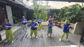 Walk Forward R/L/R Kick, Walk Back L/R/L Touch