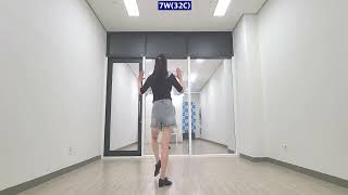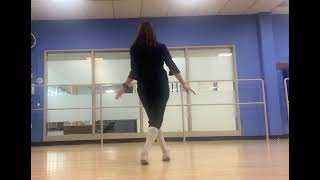 7-8Cross L over R, Unwind ½ turn right on balls of feet keeping weight on LF (6:00)