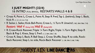 I Just Might! er en 32/4 high beginner-dans med let og positiv fremdrift. Trinene er enkle og rytmisk klare, bygget op omkring grundlæggende vægtskift, små drejninger og gentagende sekvenser. Tempoet er afslappet, og dansen er velegnet som overgang fra begynder til improver.