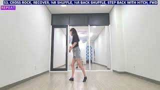 Sec 3: CROSS ROCK, RECOVER, ¼ R TURNING SHUFFLE, ½ R TURNING BACK SHUFFLE, STEP BACK WITH HITCH, FWD