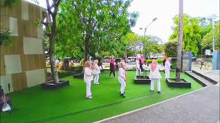 Sec 1: CROSS POINT x 2, FWD, TOUCH BEHIND, BACK, KICK