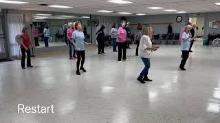 Restarts: Wall 2 and Wall 5, both after 16 counts