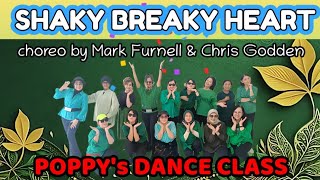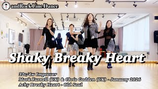 Shaky Breaky Heart er en humoristisk og rytmisk 32/4 improver-dans med tydelig reference til klassisk country og et moderne twist. Trinene er enkle og gentagende med fokus på fremdrift, klare accenter og lette retningsskift. Tempoet er moderat, og dansen fungerer bedst med afslappet attitude og tydelig rytmisk markering.