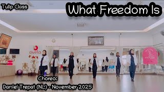 What Freedom Is er en dynamisk og velafbalanceret 32/2 intermediate-dans med tydelig fremdrift og klar rytmisk struktur. Trinene er kompakte og præcist placeret i musikken med fokus på markering, retningsskift og kontrollerede overgange. Tempoet er moderat, men energien er tydelig, og dansen kræver sikker timing og kropskontrol. Udtrykket er direkte og jordnært med plads til både power og musikalitet.