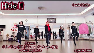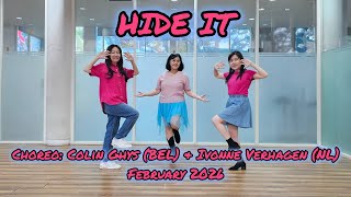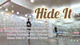 Hide It er en kompakt og rytmisk 16/4 high beginner rolling 8-count-dans med klar struktur og tydelig fremdrift. Den korte opbygning stiller krav til præcis timing og konstant bevægelsesflow, da tællingen ruller kontinuerligt uden pause. Trinene er overskuelige, men kræver rytmisk sikkerhed.