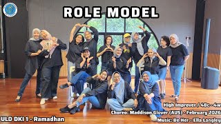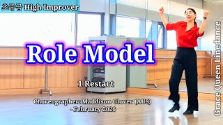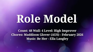 Role Model er en markant og musikalsk 48/4 high improver-dans med tydelig countryrock-attitude og stærk frasering. Koreografien arbejder i længere sektioner med dynamiske skift, præcise drejninger og velplacerede accenter, der følger sangens opbygning tæt. Tempoet er moderat, og dansen kræver sikker balance, teknisk kontrol og bevidst energifordeling gennem hele forløbet.