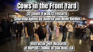 Cows in the Front Yard er en fremadrettet og rytmisk 32/4 improver-dans med tydelig moderne countryprofil. Koreografien er kompakt med klare retningsskift, markante accenter og stabil sektionering. Tempoet er moderat, og dansen kræver sikker timing og ensartet bevægelsesflow.