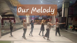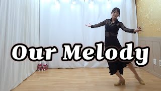 Our Melody er en teknisk og flydende 32/4 advanced rolling count-dans med stærk musikforankring og kontinuerligt bevægelsesflow. Den rullende tælling skaber en ubrudt dynamik, hvor præcision og konstant orientering er afgørende. Koreografien arbejder med lange bevægelseslinjer, kontrollerede drejninger og tydelig frasering, der følger musikkens struktur tæt.