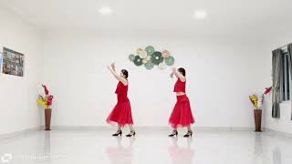 3 4 &¼ R stepping back on L (3), ¼ R stepping R to R side (4), cross L over R (&)