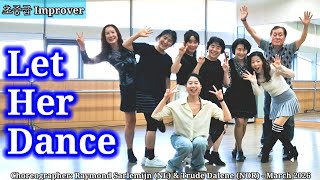 Let Her Dance er en improver-dans med 32 counts over fire vægge og et livligt latinpop-udtryk. Koreografien har et let og dynamisk flow, der følger musikkens rytmiske energi.