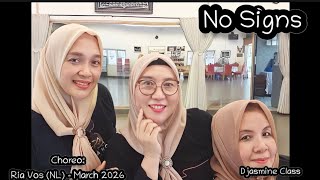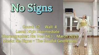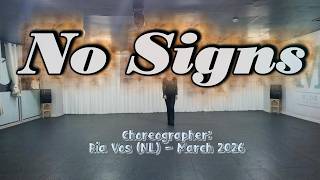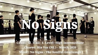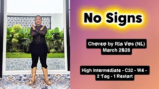 No Signs er en stilren og kontrolleret 32/4 high intermediate-dans med et tydeligt moderne soul/pop-udtryk. Koreografien er kompakt, men fyldt med detaljer, der kræver præcis timing og kropskontrol.