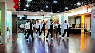Sect – 4: Nightclub Basic R. Side with Sweep. Behind Side Cross with Sweep. Fwd Sweep. Rock Fwd. Back. Together.