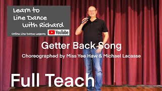 Getter Back Song er en livlig og publikumsvenlig 32/4 high beginner-dans med et klassisk countryudtryk. Koreografien er overskuelig med et stabilt og fremadrettet flow.