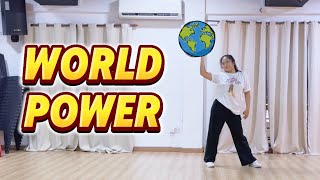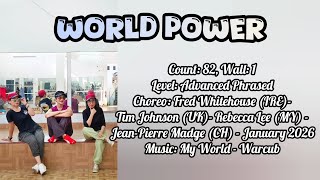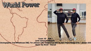 World Power er en ambitiøs og scenisk 82/1 advanced phrased-dans, hvor koreografien følger musikkens struktur i detaljer frem for et fast gentaget mønster. Det skaber en dynamisk og varieret oplevelse, hvor hver sektion har sin egen karakter.