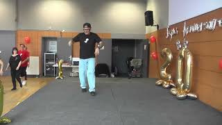[1 – 8] Back drag, pop, run run sweep, cross back back, cross back, out out
